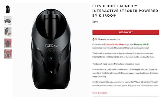 Go to www.kiiroo.com and claim your 10% discount on the Fleshlight Launch™. Then immerse yourself in x-rated interactive content and experience mind-blowing sexual pleasure.